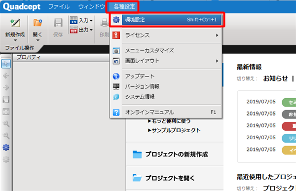 | 環境設定の画面の開き方をご紹介します。 |