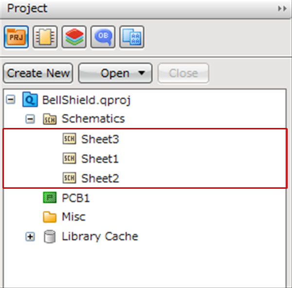 The position of a Schematic folder, PCB sheets, a Misc folder and Library Cache cannot be rearranged.