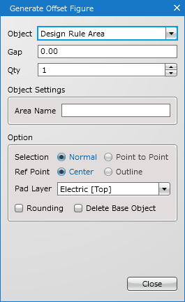 Select an object type to generate from Line, Filled Polygon, Route, Plane(Static), Keep Out Area, or Design Rule Area. |