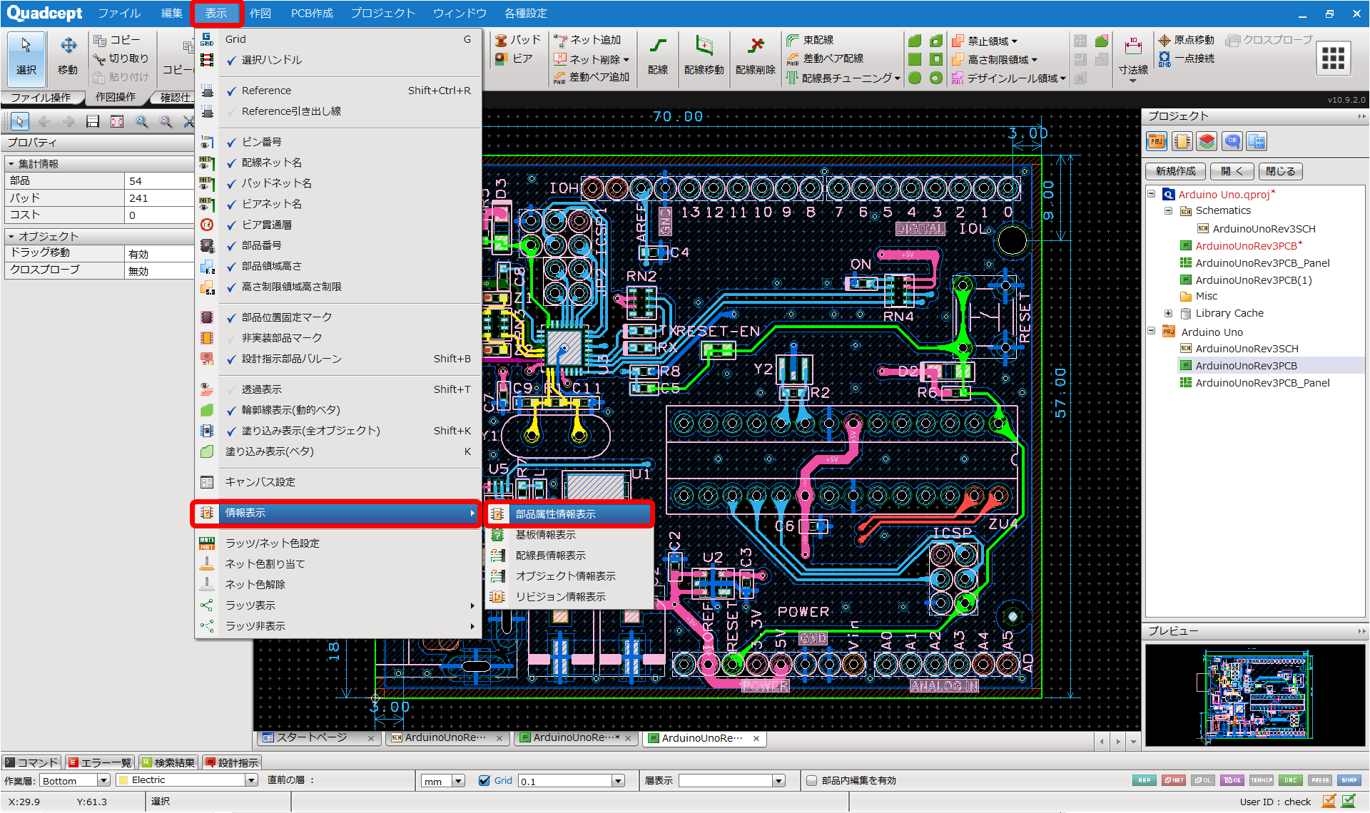 内容を編集する必要がない場合は、プロパティウィンドウからもプロパティ表示で部品属性を確認できます。