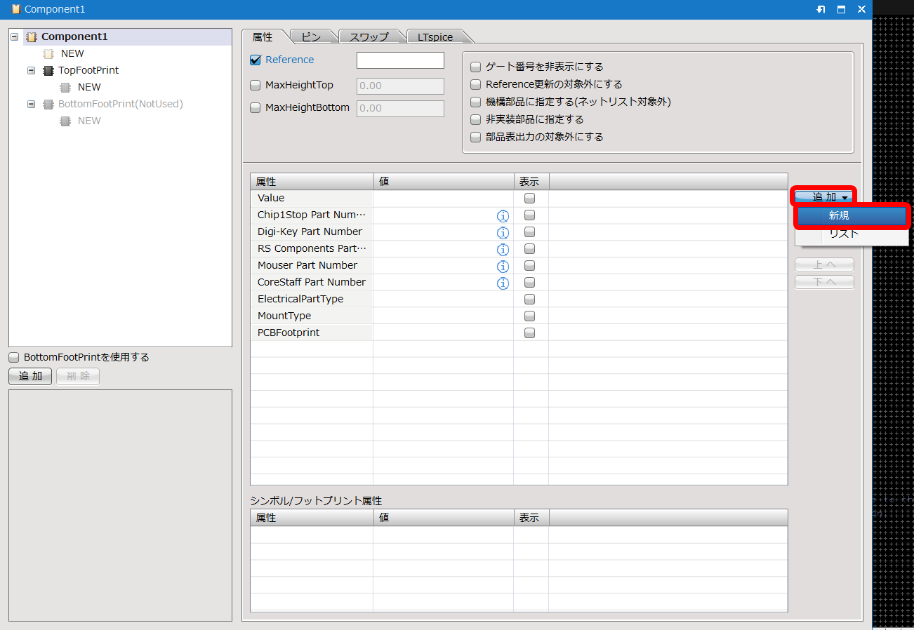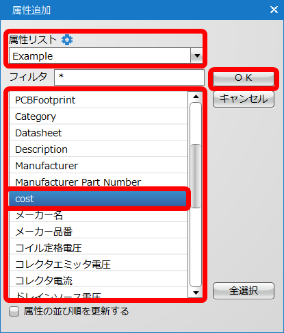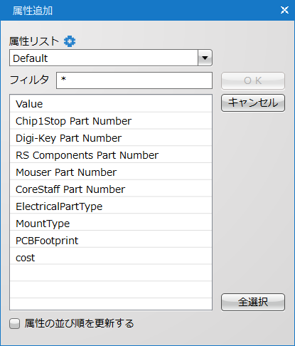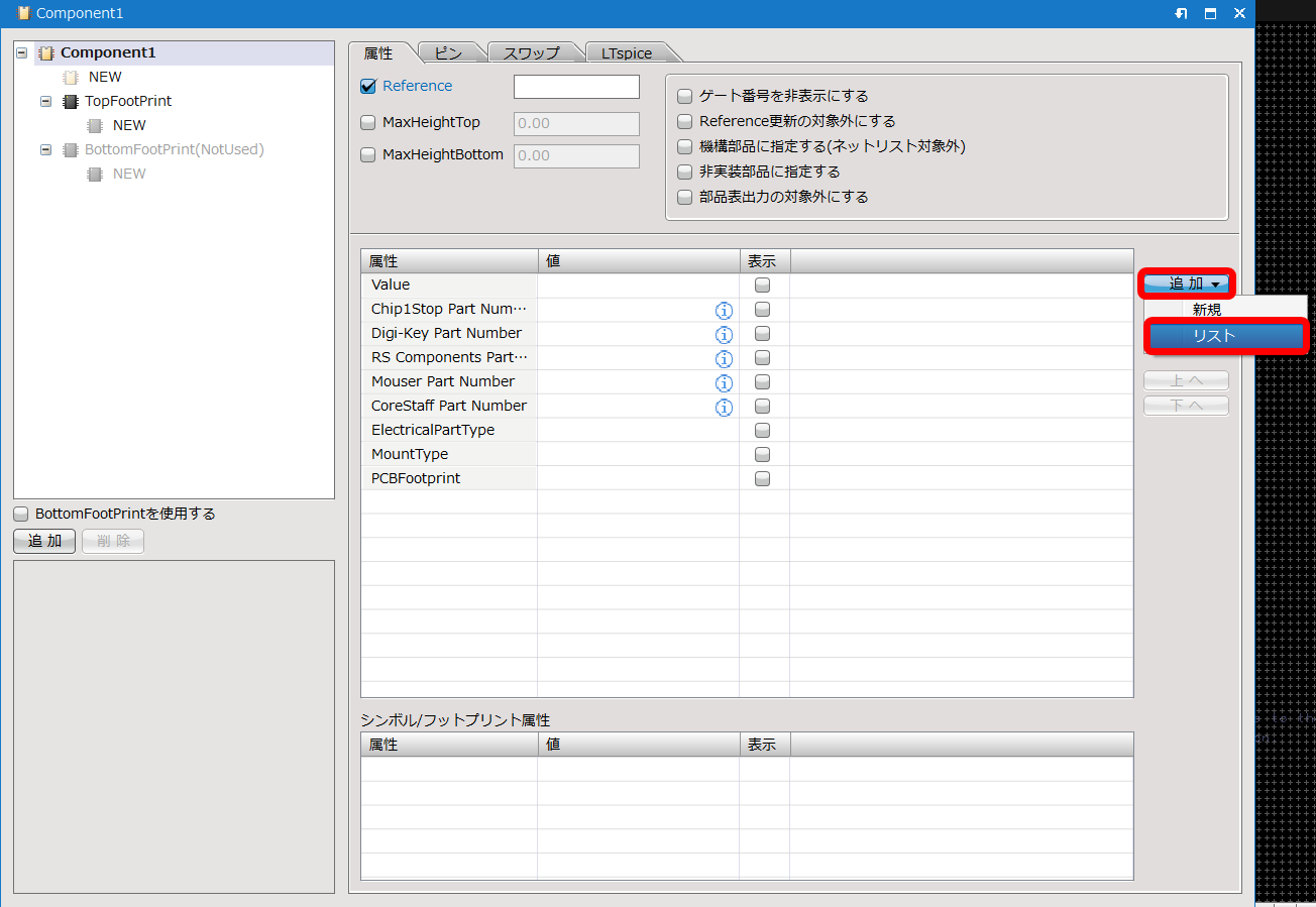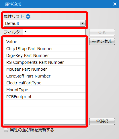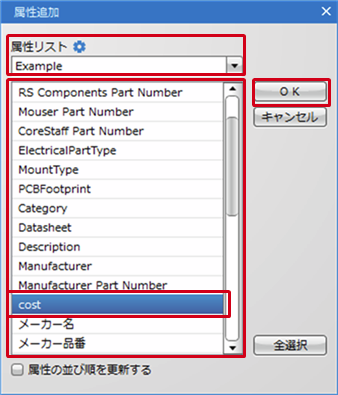| 部品属性をリストから選択し、追加する方法をご紹介します。 |