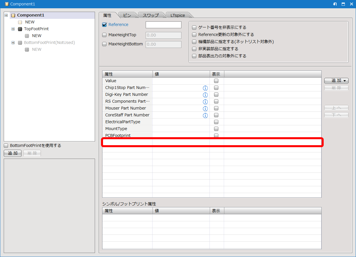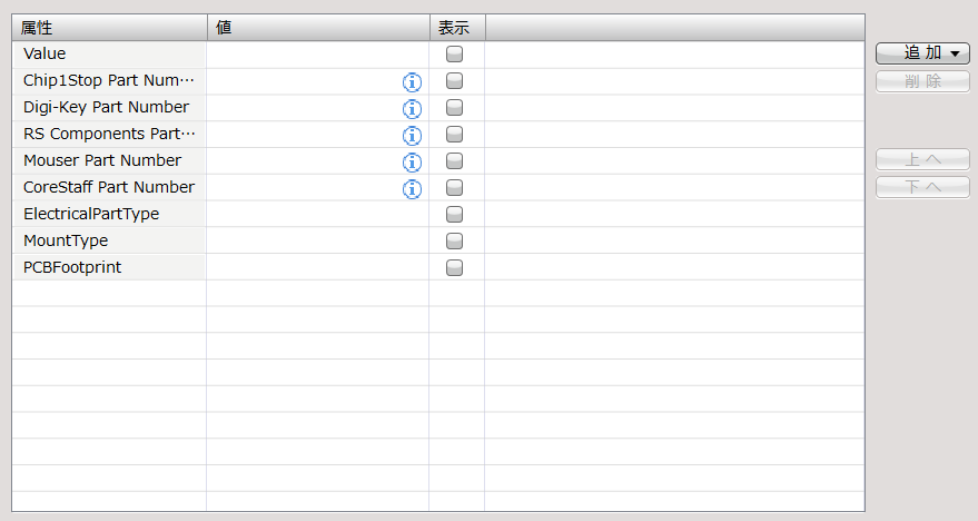 属性は必要に応じて制限なく入力できます。部品表出力や部品の情報を確認するためのもので、入力しなくても問題ありません。