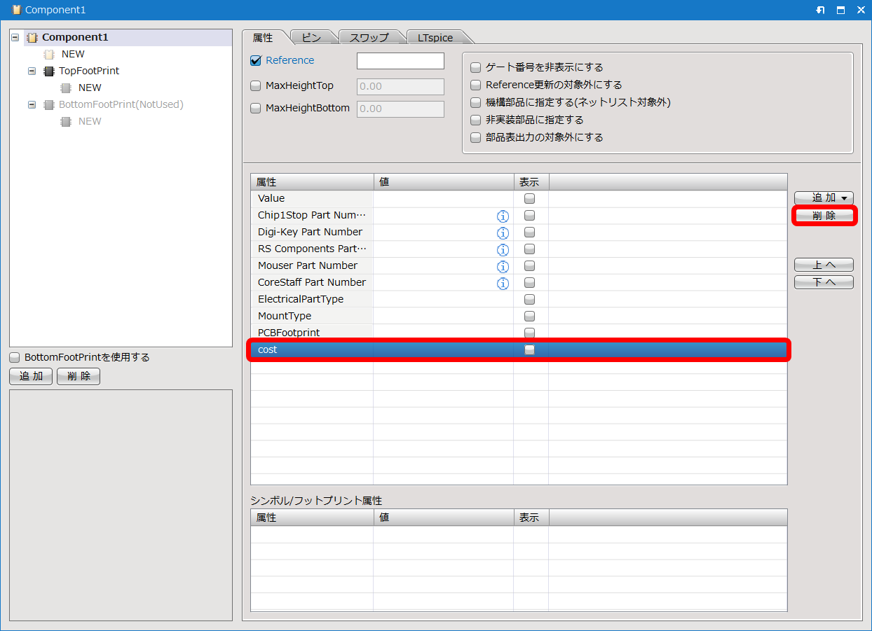 部品に定格や乗数、メーカーなどの属性を追加/削除する方法をご紹介します。