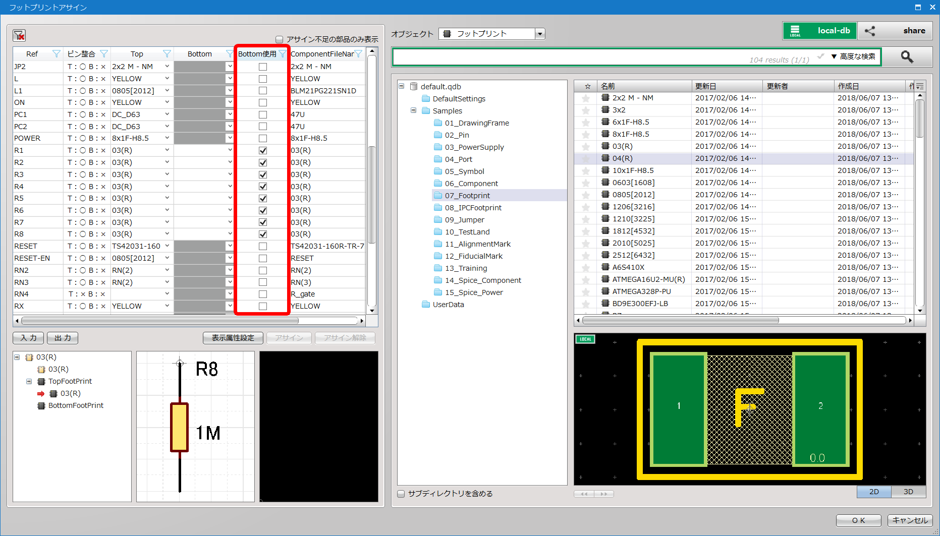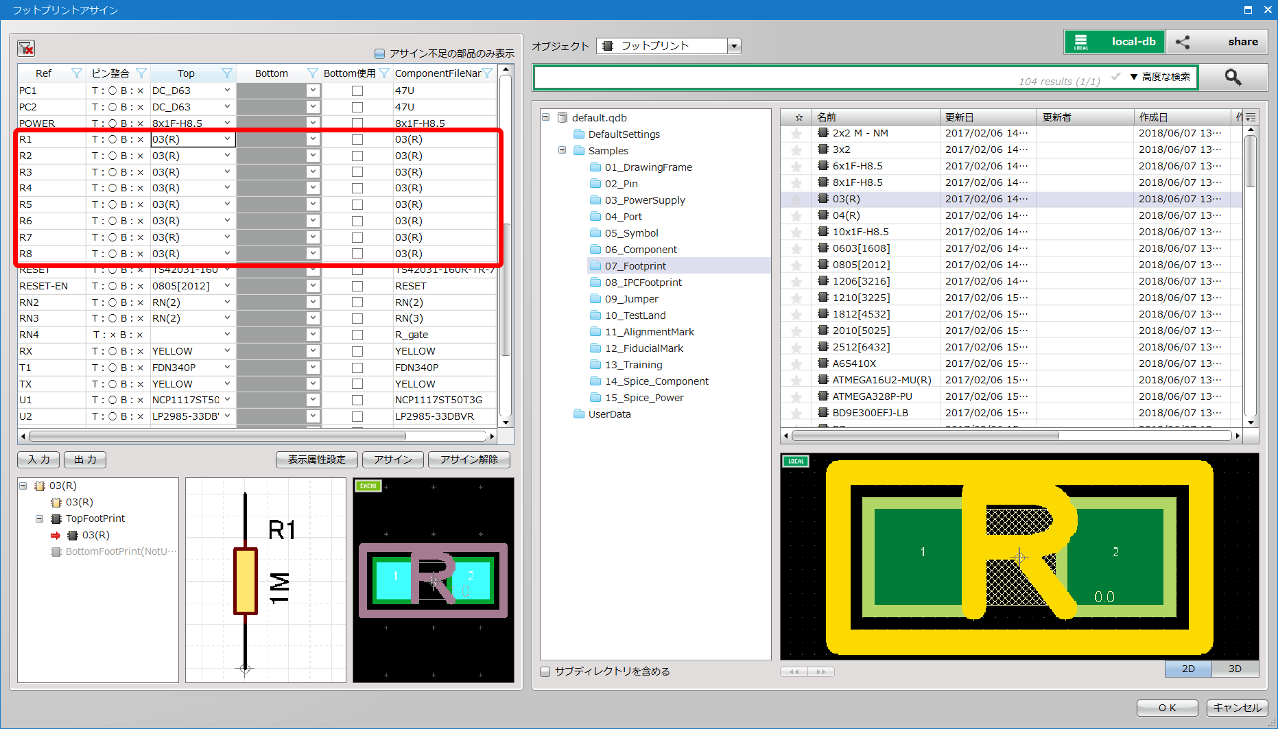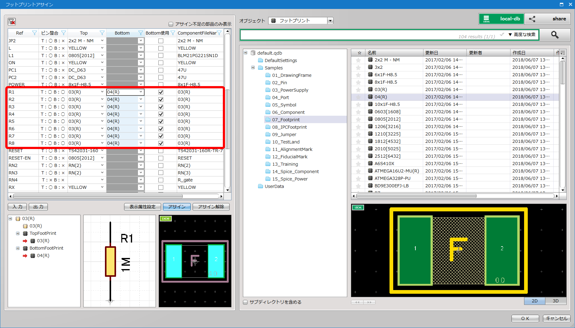 フットプリントアサイン(PCB部品割り当て)