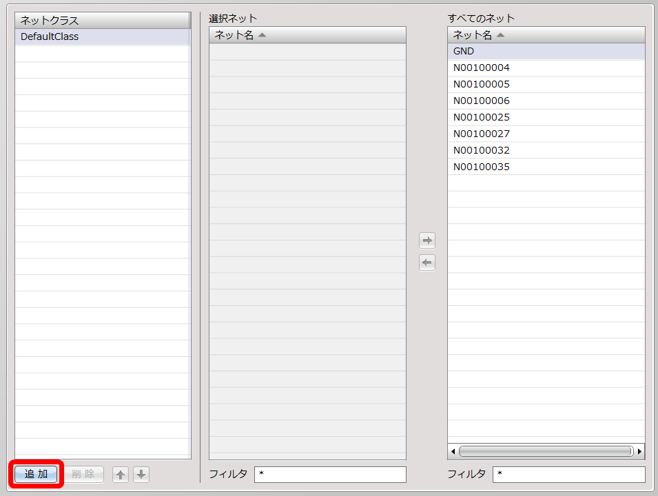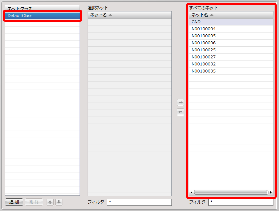 | はじめは「DefaultClass」にすべてのネット名が設定されています。 |