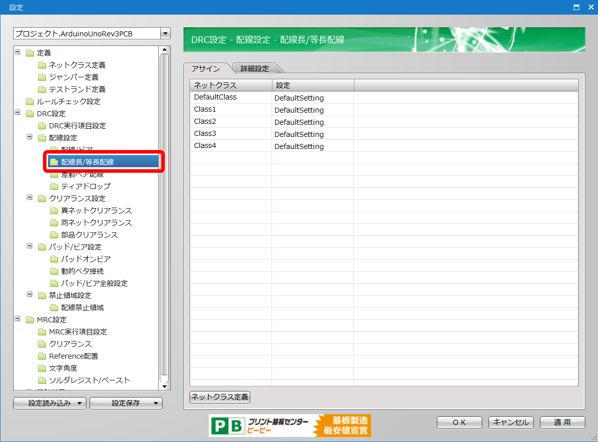 プリント基板CAD : DRC/MRC設定