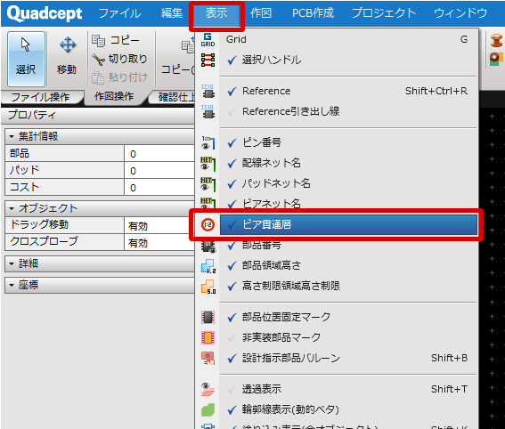 | ビア貫通層の表示を切り替える方法をご紹介します。 |