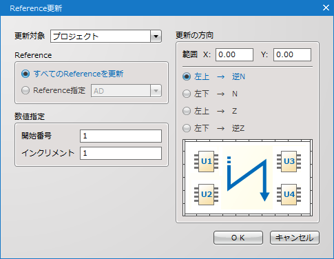 「Reference指定」:指定したReferenceの部品にのみ更新を行います。